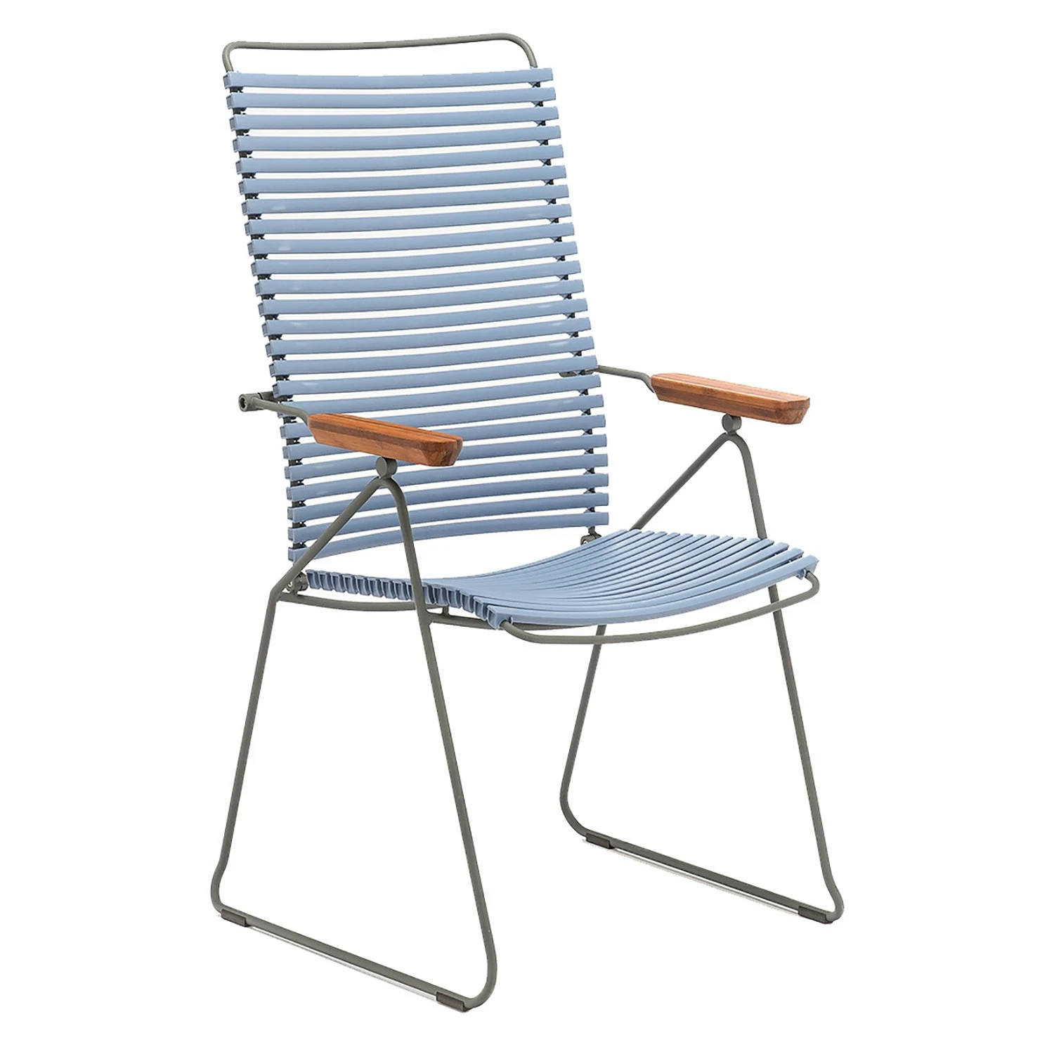 Dieser Stuhl von Houe ist Teil der Click-Serie, die von Henrik Pedersen entworfen. Der komfortable Stuhl verfügt über eine verstellbare Rückenlehne, so dass Sie leicht zurücklehnen und entspannen, und es eignet sich sowohl für Kinder und Erwachsene. Klicken Sie sind mit einem Rahmen aus pulverbeschichtetem grauem Metall, ein Sitz aus Kunststofflamellen und zwei Armlehnen in Bambus. Erhältlich in 14 verschiedenen Farben.